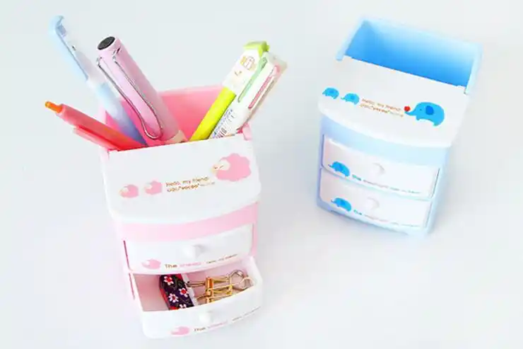Double Drawer Cartoon Desk Pen Holders Kids Desk Pencil Holder As School Stationary Organizer